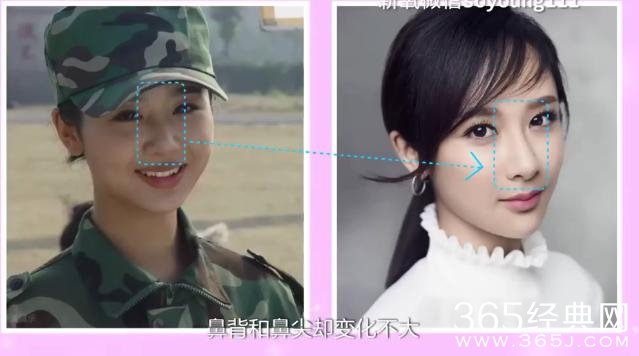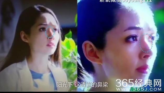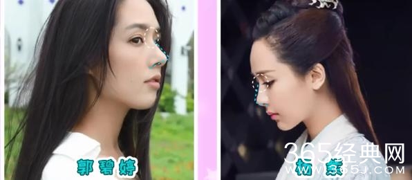 那下面我们在看看杨紫的鼻子,其实她的山根比郭碧婷高