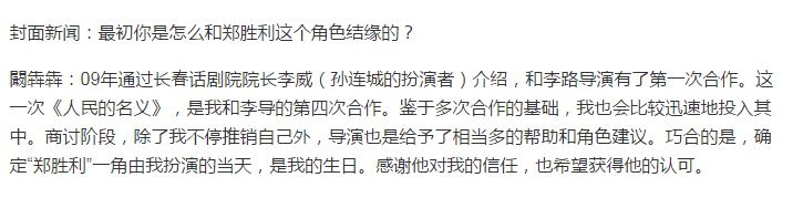 在人民日报对李路和周梅森的采访中。李路坦言,阚犇犇从10年前就跟着他了,一直在做导演助理的工作。在《人民的名义》筹备阶段,阚犇犇陪了总导演李路半年。当时他为了演这个角色,都快抑郁跳楼了。