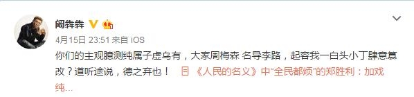 阚犇犇毕业于北京电影学院,在导演李路门下做了十多年的助理导演。在《人民的名义》里,负责B组导演事宜。从B组的剧情节奏看,他在导演上的才能是有目共睹的,可是作为演员,还比较欠缺。
