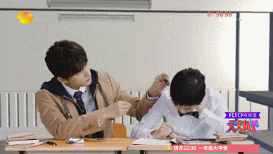 杨洋望着好友胡夏,笑的一脸单纯却充满爱意,看!连后面的妹子也忍不住注意到了!