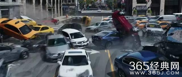 想当年,《速5》双雄“遛保险箱”毁了一个街区,《速6》四辆汽车把飞机拉下来毁了半个伦敦,《速7》开车直接空中穿越迪拜大楼,从这个角度来看,《速8》众人开车再打个潜艇什么的,其实都在意料之中了。不过,纽约的“万车奔腾”那场戏却是让人印象深刻的,当你看到无数辆汽车像《生化危机》中的僵尸一样涌向城市的街头的时候,当你看到一辆又一辆汽车前赴后继地落雨般冲出大厦的玻璃窗从天而降的时候,可能不禁会思考“这些玩意到底是汽车还是汽车人”的问题——反派利用高科技控制全城的汽车来帮助自己犯罪确实是一个既疯狂又很有意思的创意。从那一幕开始,我甚至觉得“速激”系列已经从过去意义上的“英雄片”变成现代意义上的“超级英雄片”了,毕竟那么多汽车砸下来,别说老司机们了,换了钢铁侠和美国队长可能也要跪了。至于“速激”系列后面的作品再要怎么拍,只能问问老天爷然后拭目以待了。