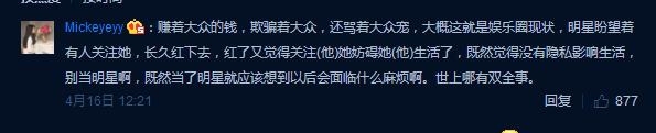 赚着大众的钱,欺骗着大众,还骂着大众宠,大概这就是娱乐圈现状,明星盼望着有人关注她,长久红下去,红了又觉得关注(他)她妨碍她(他)生活了,既然觉得没有隐私影响生活,别当明星啊,既然当了明星就应该想到以后会面临什么麻烦啊。世上哪有双全事。