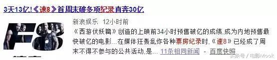 话说,这《速8》竟也是够牛X的,上映之后,票房突飞猛进,狂飙之速度大有冲击总冠军之姿。