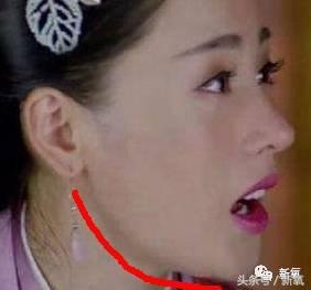 看一下张天爱的这张侧面图,很明显能看到颧脂垫的松弛下垂。
