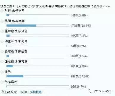 我们先来看看网络上关于剧中演技的投票排名,在八大演员里,陆毅虽然不是倒数第一,但这票数和位于倒数第三的排名,相比起遥遥领先的达康书记,也可以说是相当差劲了。