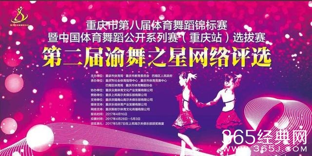今(18)日,重庆时报记者从市体育局了解到,由市体育局主办的“中国体育彩票”重庆市第八届体育舞蹈锦标赛暨全国体育舞蹈公开赛(重庆站)选拔赛,将于2017年4月29日至5月1日在巴南区体育馆隆重举行,并于4月29日19:30进行开幕式表演。