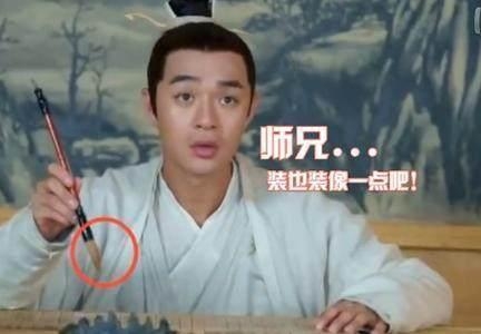 师兄提笔正要写字,可这毛笔您确定能写出字来?还是像照片中的那句话:师兄,您装也装得像一点吧。