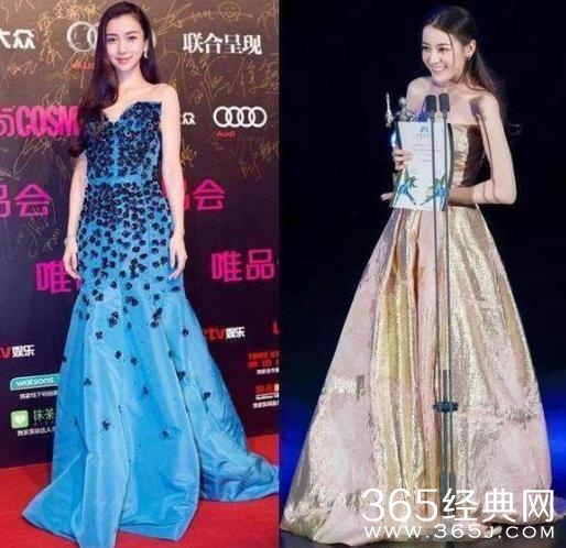 同样是长款礼服baby选择的是蓝底黑色花朵点缀的长裙,侧分的大波浪卷发,优雅中又带有少女的甜美气息!迪丽热巴选择的是金色的长裙,凌乱美的半扎发型,凌乱中透出一种随意美。依然是美美的还是没有分出到底谁更美一些。