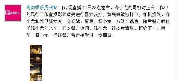 2013年6月11日,释小龙疑因不满同行的两位女伴被流行工作室记者(南都文娱周刊特约记者、摄影师)黄亮跟拍,从而暗示司机对黄亮停止殴打,招致黄亮眼镜被打飞,相机损毁,打人后释小龙及其司机欲驾车逃逸,随后被赶到的警方带到派出所停止一夜盘查,最终释小龙的司机供认打人事实,对黄亮停止了抱歉并给予了经济赔偿。
