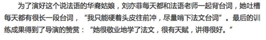 拍《王的盛宴》,角色需要弹琵琶,就默默的去学了好几个月,还真的达到了能演奏的水平。电影里角色要说法语,就认真的学了一年,敢情她也没把自己当仙女,而是女版张震,演什么学什么,还都能学得个有模有样。