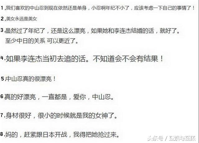 那么现在的中山忍怎么样呢?现在她大多拍一些日剧,在日本收视还不错。中山忍一直是日中友好人士。她还在中国开通了微薄,在微博中,她对外公布现在仍然一直是单身。也没有任何感情绯闻爆出。算算,中山忍1973年出生,到现在应该44岁了,中国网友如是说: