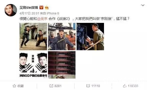达康书记一火,他的电影就备受关注了,特别是他参演的一部动作电影《战狼2》,吴京导演的新作。近日,达康书记还发布了一篇微博为《战狼2》宣传造势,还称自己和吴京合作《战狼2》是“京刚狼”。
