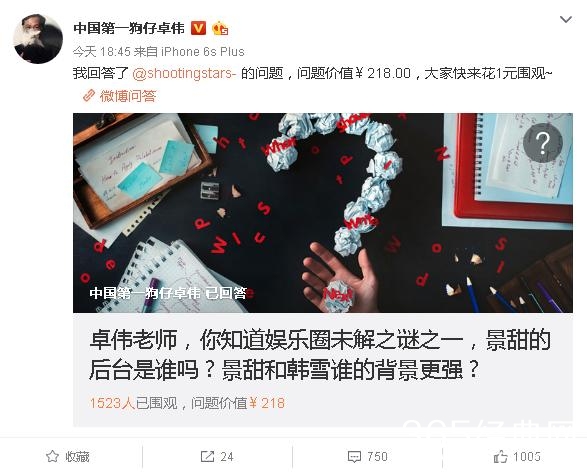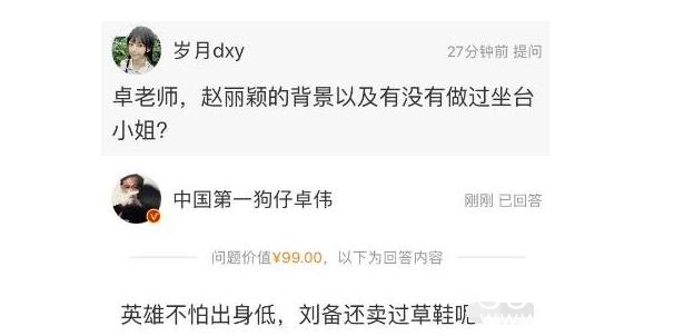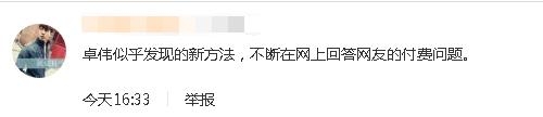 对此,有网友调侃卓伟最近可能很缺钱,所以找到了一条赚钱的新路子--在微博收费回答网友的问题,