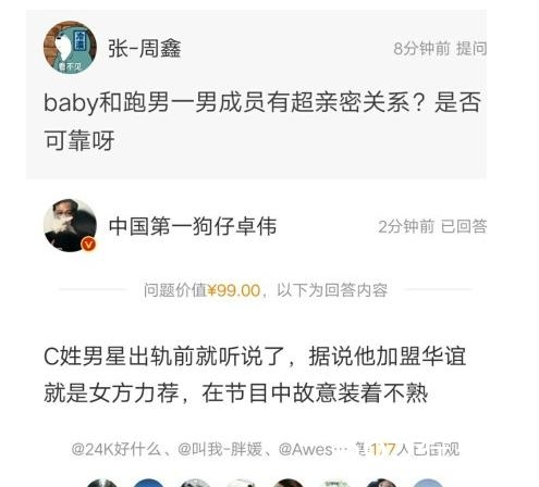 有网友问卓伟baby和跑男团某男成员是否有超亲密关系,卓伟不仅没有否认,还暗指该男成员是陈赫。