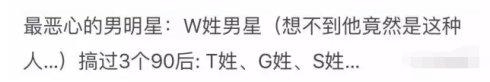 3.W姓男子潜规则T、G、S三个姓的90后女星