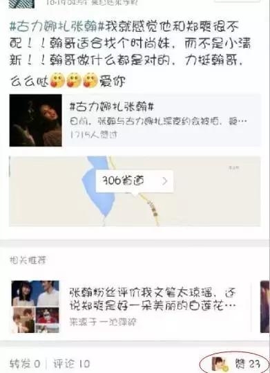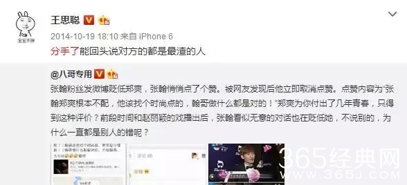 张翰和郑爽分手以后,曾经点赞粉丝诋毁郑爽的微博