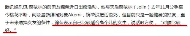 今天一大早看到蔡依林前任锦荣,暗讽蔡依林的新闻,新闻中说锦荣出席活动的时候提到未来女友的条件