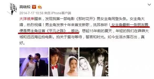 朴树带着《平凡之路》重新出发的时候,曾经的恋人周迅在朋友圈帮朴树打歌。