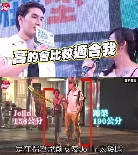 而他的前女友蔡依林,跟他比起来确实矮,官方身高158cm