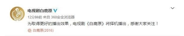 鉴于疑问之声扑天盖地,刚刚,电视剧《白鹿原》官方微博发表声明: