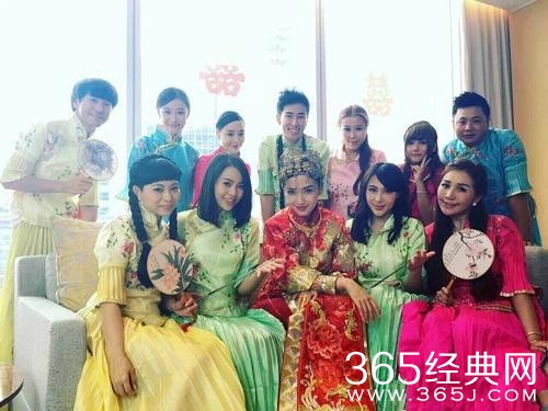 呃...虽然上图被吐槽有浓浓的乡土气息,但是下图的礼服还是很不错的,伴娘李冰冰领衔哟,大气高雅。
