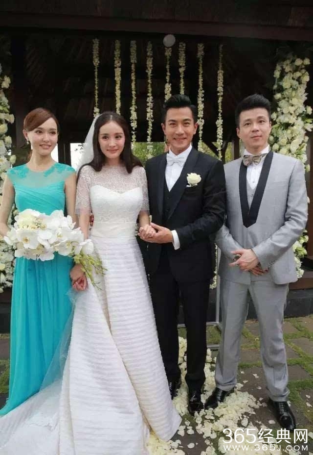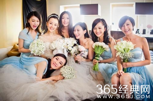 徐若瑄结婚也是当年的一大盛事,本人很美哦,选的伴娘团礼服也和新娘服搭配得很好,白色代表纯洁,很和谐,林心如美美的。