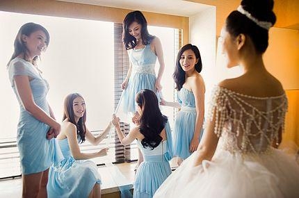 董璇的伴娘团服装很好看哦,几个不同风格的伴娘也是穿得各具风情,美如画。