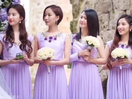 双陈婚礼伴娘服走的是少女风哦,阿娇和陈乔恩美得让人移不开眼,伴娘们亭亭玉立,很美