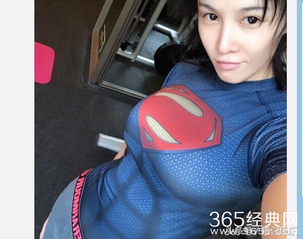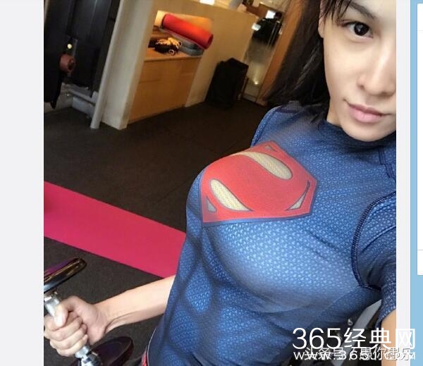 可以看出,这是一件很有特色的健身服,哈哈,张蓝心这是要秒变女超人吗?