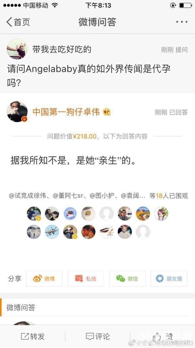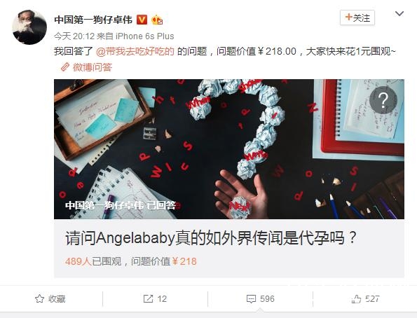 网友的问题是这样的,请问Angelababy真的如外界传闻是代孕吗?而卓伟的回答:据我所知不是,是她“亲生”的。
