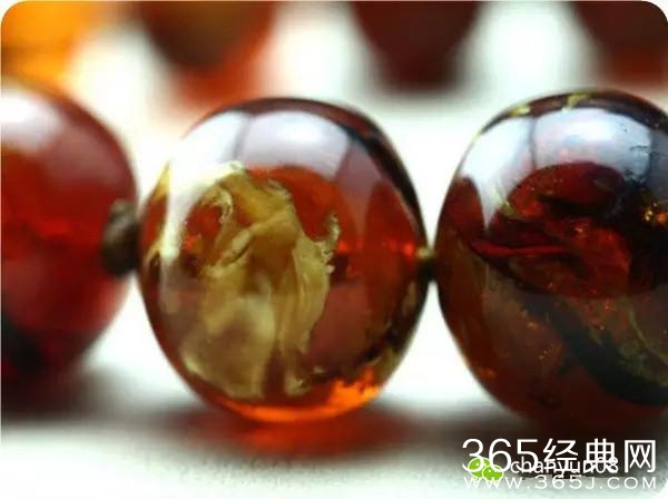 4.水骨花又叫“飘花”,花色不是满花,琥珀中飘有不透明的花色。