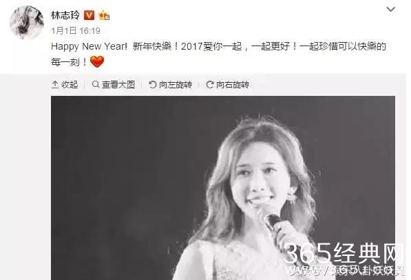 今年林志玲的新年感言:“2017爱你一起,一起更好!一起珍惜可以快乐的每一刻!”