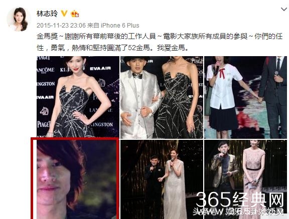 再往前,就是前年的金马奖上,志玲姐姐化身《我的少女时代》里的林真心,和言承旭隔空合体,随后她自己发的微博里还贴了这张图: