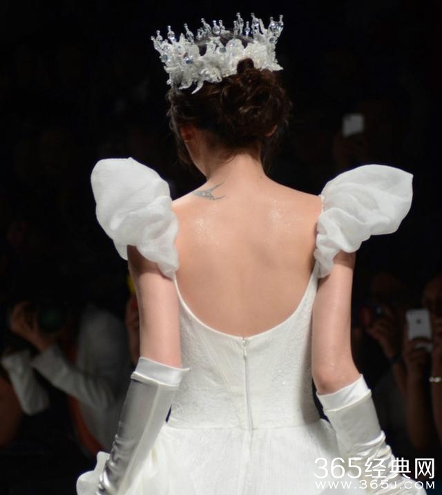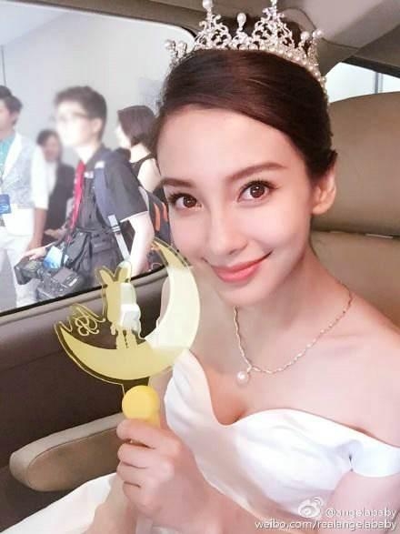 同样是白色礼服头戴皇冠,如果说刘亦菲仙气十足宛如误入凡尘的仙女,那baby简直和公主一样,天使临凡尘,美丽极了。