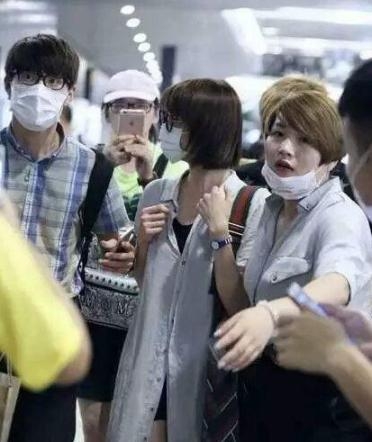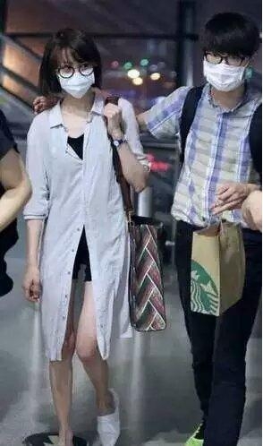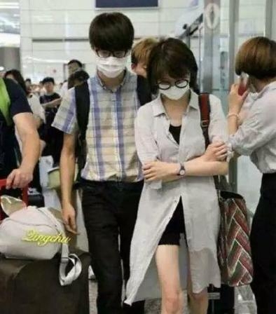 郑爽走在前面,在她的身后有一个疑似杨洋的男子,北河一个黑色的书包,带着口罩。
