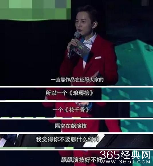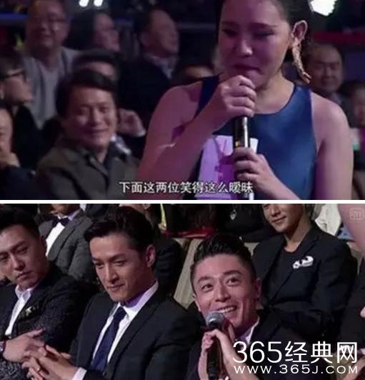 晚会现场,主持经验尚少的Hold住姐谢依霖跑到胡歌和霍建华身旁,调侃俩人的暧昧关系。