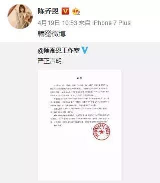 昨天,陈乔恩也转发其本人的声明,称卓伟诽谤,在爆料提及东方不败姐姐睡剧组小鲜肉,侵犯了她名誉权。