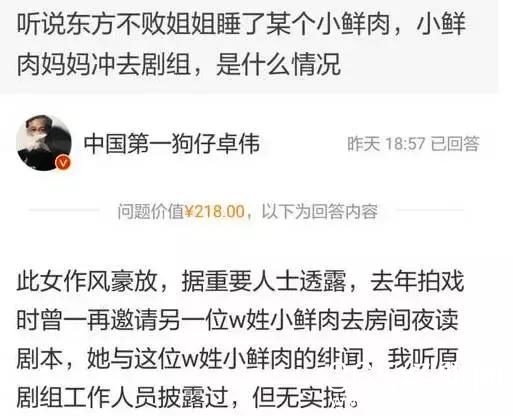 卓伟回复此女作风豪放,在去年邀请W姓小鲜肉去房间夜读剧本,而且两人之前传过绯闻。