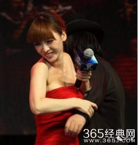 柳岩惊慌失措又不能说什么,只能尴尬地微笑着将对方的手推开!