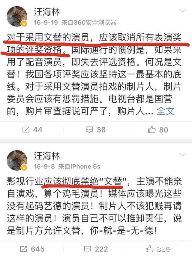就像知名的编剧汪海林曾经批评过,主演不能亲自演戏,就不是演员,虽说一个不用露脸的背影可以由文替来完成,但是这却是对表演这门艺术极大的不尊重