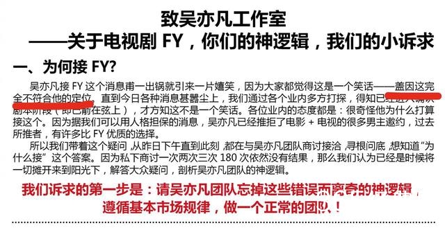 理由的话,咕咕看了一下,主要意思就是,粉丝不满足于公司给吴亦凡接人设好的角色,还举了个例子啊