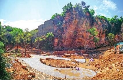山体建步道,如何利用好开凿出的山石,是个设计难题。在大腹山步道一期工程最后一环,就是将原先开凿的山石作为石材,建造了一个岩石园。昨日,记者在岩石园施工现场看到,这里的裸露山坡正在改造,将被修成高低错落的结构,进行立体绿化,并设置休憩平台。