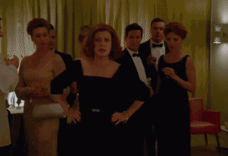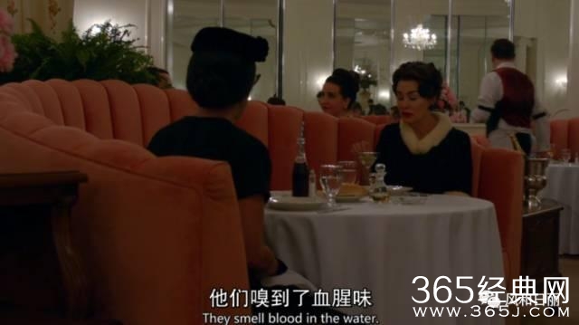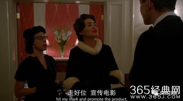 Joan依然讲究排场,去餐厅吃饭,也不忘给自己发发通告,顺便打压一下Betty。(说人家是女配,结果自己最后竟然没有入围奥斯卡影后)