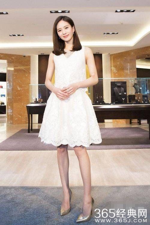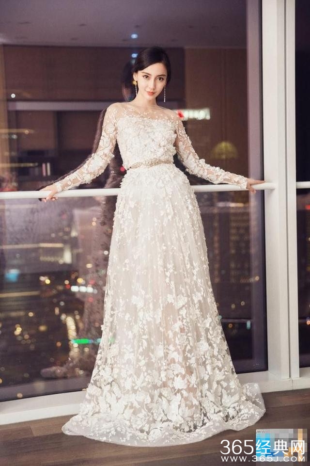Angelababy一直就是颜值担当,化妆之后五官十分精致,而且偏爱裙子打扮,经常都是身穿白色雪纺蕾丝裙出镜,非常有女神气质,显得身材比例非常好
