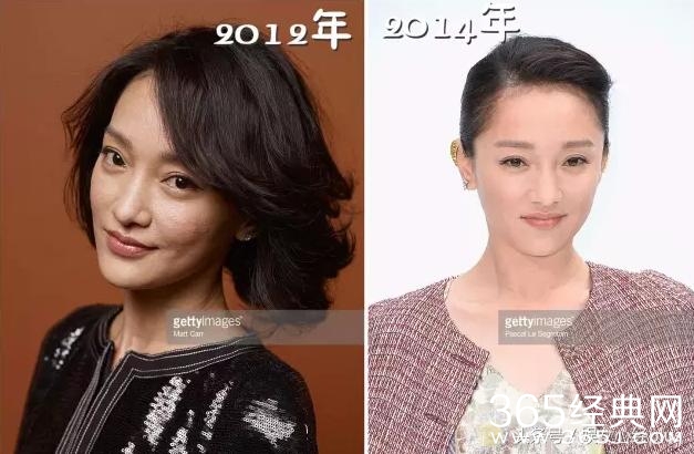 和范冰冰的长窄脸对比,周迅的短窄脸看上去更柔和