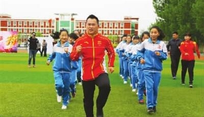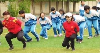 钱红、邓琳琳指导学生做热身运动