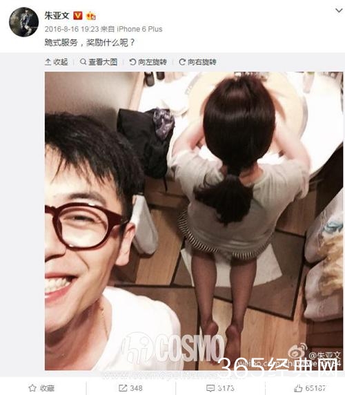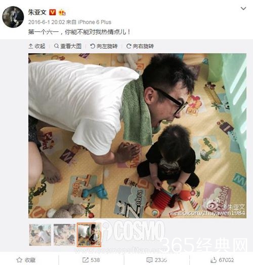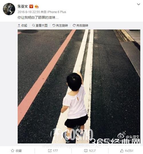 这个是COCO这篇文章的重点,平时看上去色欲满满的朱亚文其实是个很有想法的艺术青年,发的晒老婆晒娃的微博都是充满自己的想法,别具一格。