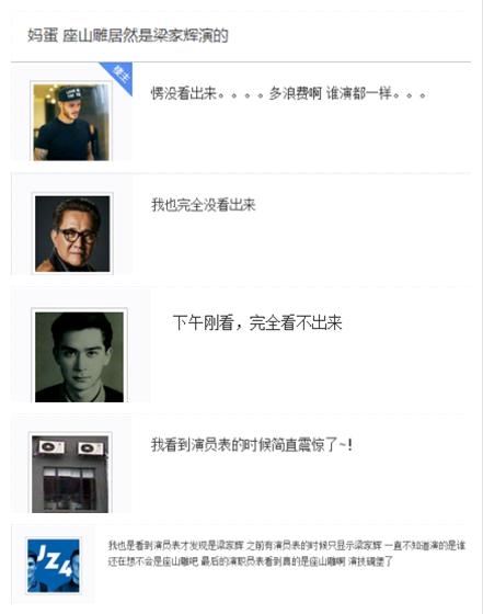 确实,不看演员表我楞不知道这部电影里面有梁家辉,据说单是化个装扮都要好几个小时。