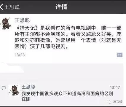 虽然王思聪发朋友圈手撕鹿晗,说小鹿跟刘亦菲挺像,用一个表情演了几部剧。
