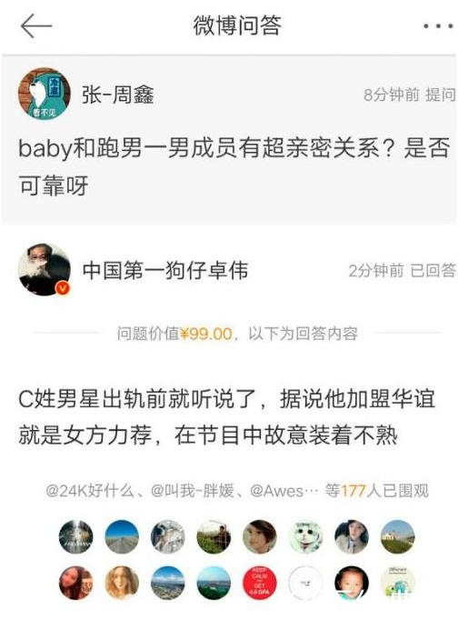 卓伟曝跑男团C姓男星与baby关系亲密!